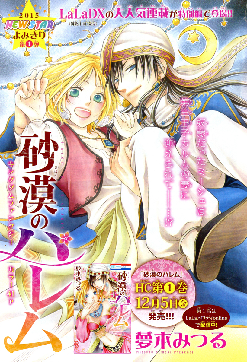 Calendar_064Here’s a preview page for Lala DX 1/2015. The furoku is a Nyanko-Sensei envelop. There will be a special chapter of “Akagami no Shirayukihime” and “Mizutama Honeyboy”. Sabaku no Harem’s new arc starts with long 50-page chapter. Needless to say, I’m super excited.Calendar_065Strange Dragon is entering it’s final arc… I think??? The frontis page is kinda confusing. It says “final chapter” and then right below it says “beginning of serialization”. But in another preview it says “heading toward the final chapter”. Either way, this series is gorgeous and I look forward to having the time to actually read it. I’m very happy to know the series is less than 5 volumes ^^.