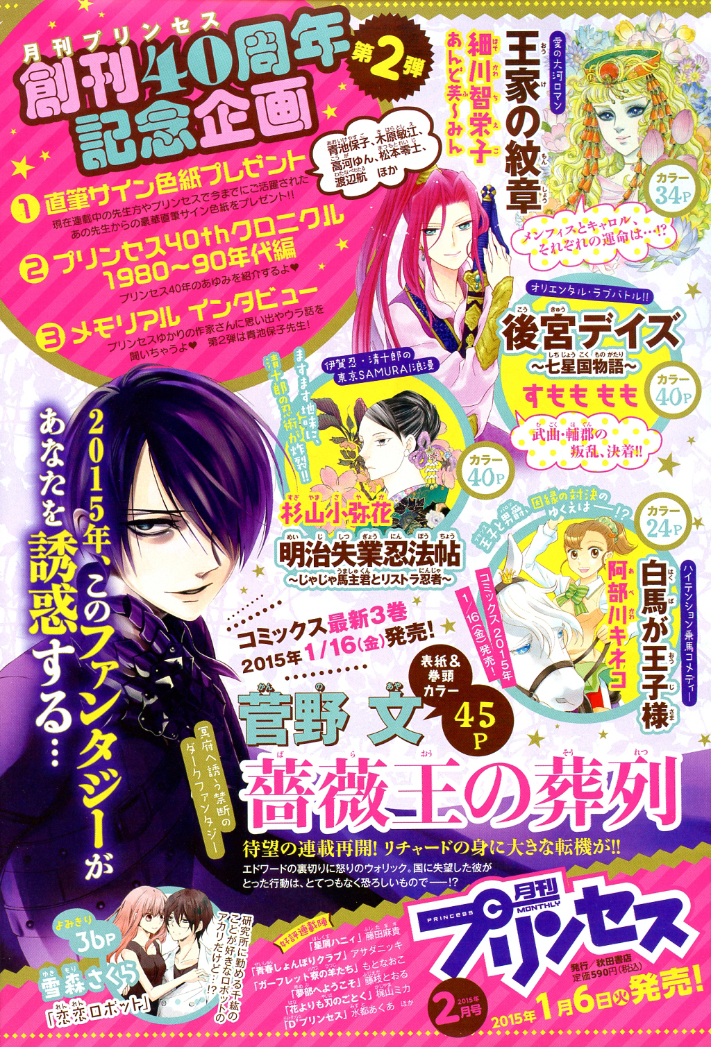 And now onto the previews for the next issue. 2015 is the 40th year anniversary of Gekkan Princess, so there will be tributes in each issue this year. Here’s the color advertisement.