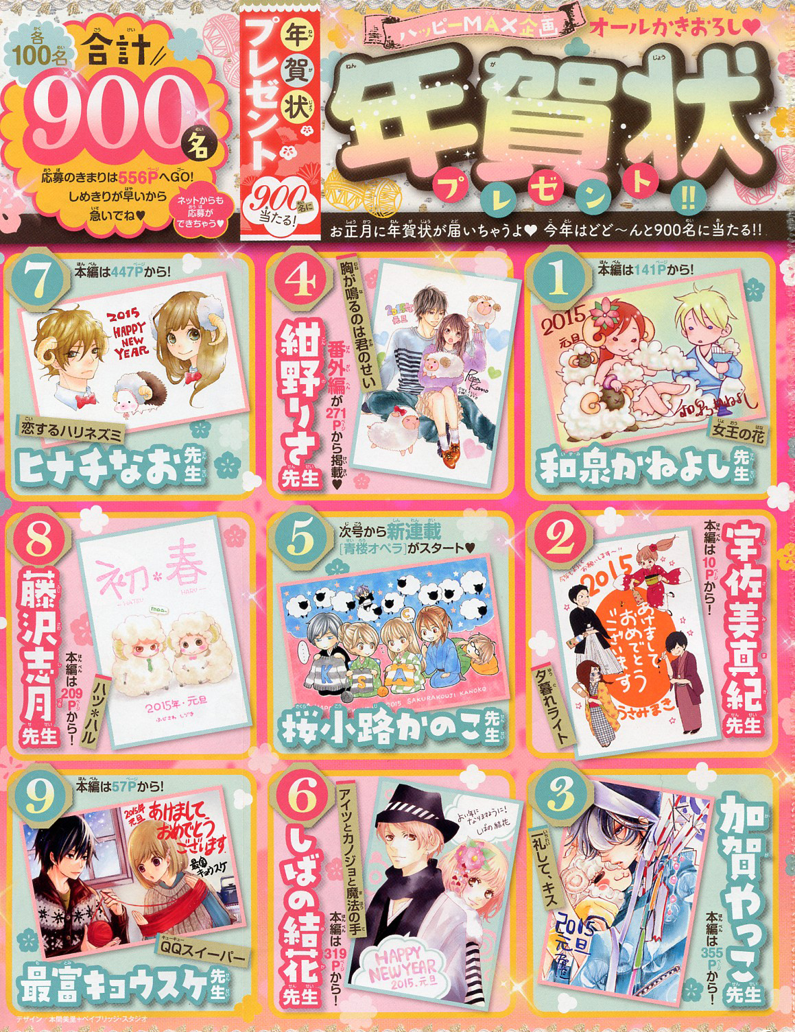 Here are the New Year’s 2015 illustrations from your favorite Betsucomi mangaka.