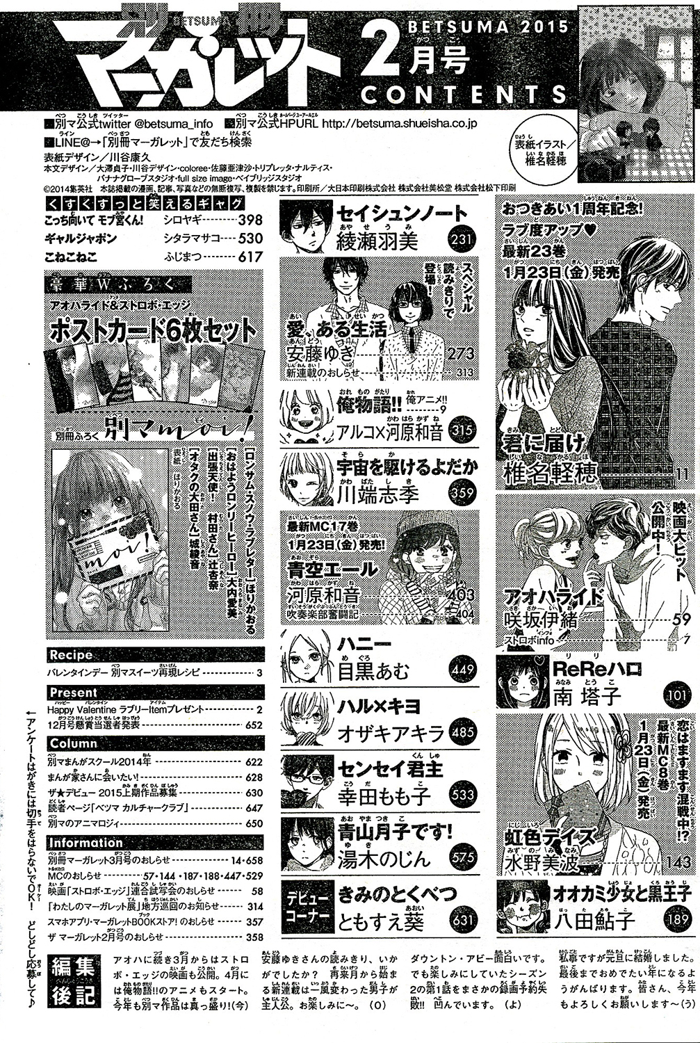 And lastly, here are the previews for Betsuma 3/2015 and The Margaret 2/2015: