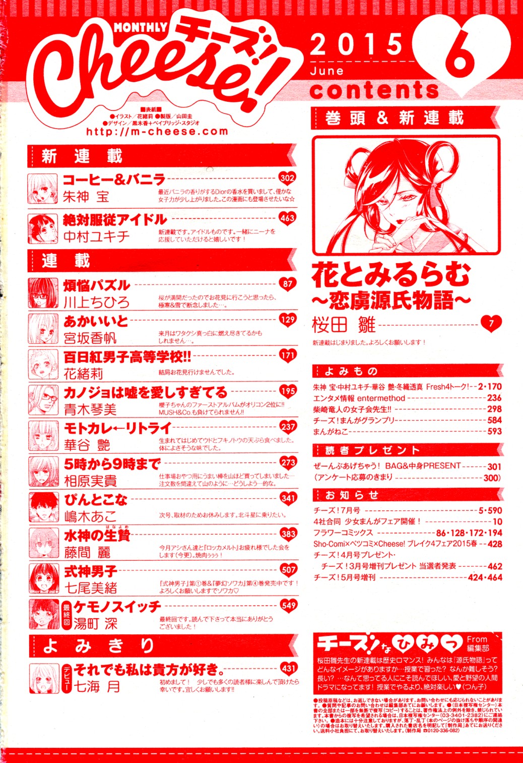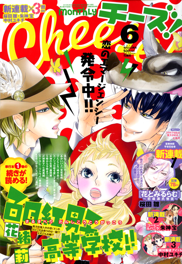 “Sarusuberi Danshi Koutou Gakkou” is on the cover of Cheese! Issue 6. There are 3 new series in this issue and one series that’s ending.